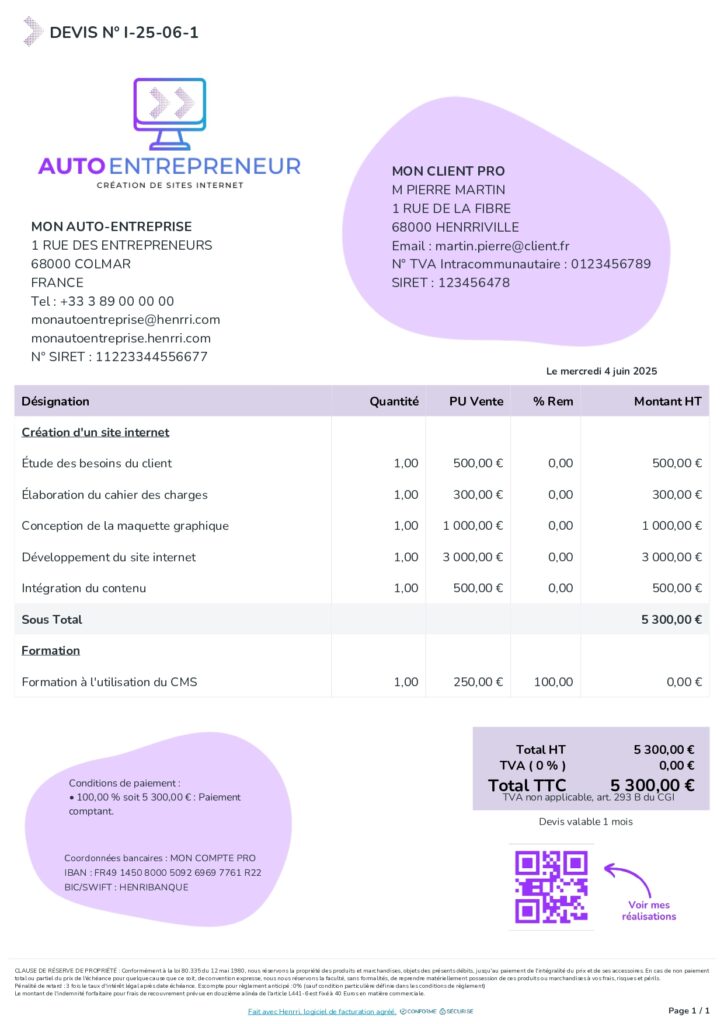 Avec Henrri, vous avez le pouvoir de sortir du cadre standard pour créer des documents qui vous ressemblent vraiment. La personnalisation complète vous permet d’ajuster chaque détail pour que votre devis devienne votre meilleur commercial. 💼
