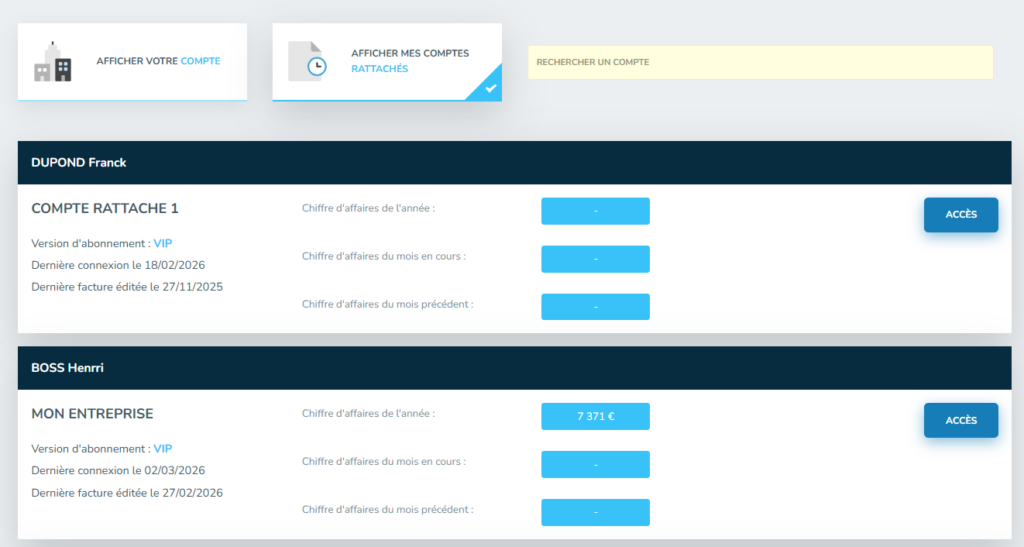 C’est là que la magie opère. Une fois vos entreprises rattachées à votre accès principal :